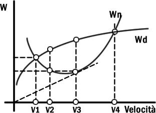 196 La velocità di salita rapida di un aereo ad elica corrisponde, sul diagramma rappresentato, alla velocità: