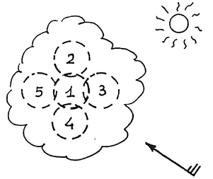 264 Cumulo, vento e sole come in figura. Dove si troverà con maggiore probabilità la termica?