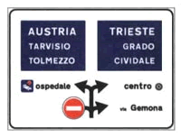 Il segnale raffigurato preavvisa di svoltare a destra in direzione Trieste al secondo incrocio